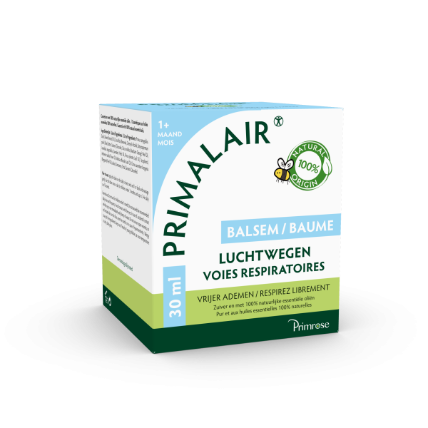 Primalair Balsem is een 100% natuurlijke ademhalingsbalsem met essentiële oliën voor vrijer te ademen en rustgevend comfort.