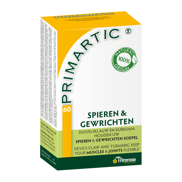 Primartic bevat duivelsklauw en kurkuma en houden uw spieren en gewrichten soepel.